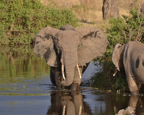 There is a hippo pool where over 100 hippos huddle closely together. The odor is repugnant, but watching their interactions is hypnotizing. Undisturbed hippos appear so calm, it’s hard to imagine they are one of the deadliest animals in Africa to humans, until you see them scare off large crocodiles. The immense power in their jaw is instantly evident when they open their mouths widely revealing their large lower canine teeth. They are known to be able to snap canoes in half.