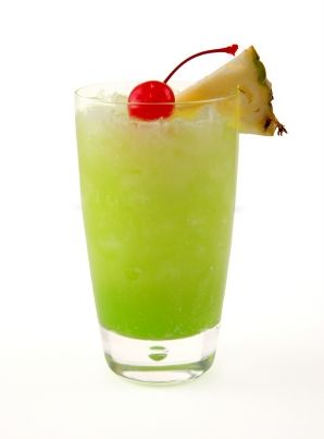 Vodka, Melon liqueur, Pineapple juice (or orange), Cherries.