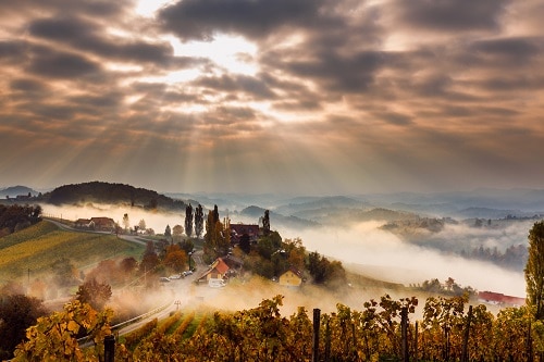 To express its full potential, GV needs to be planted on mineral-rich slopes composed of silt, sand, clay, and rock with sunny exposure and cool evening breezes. While Austria’s finest expressions come from vineyards above the Danube River, in Wachau, Kremstal, and Kamptal regions, it’s also cultivated in neighboring Trentino-Alto Adige Valle Isarco, Italy, the Czech Republic, Slovakia, and Hungary. But since quality Grüner Veltliner has begun to make a global impact, vines have been planted in Portugal, Adelaide Hills, Australia, Central Otago, New Zealand, Clarksburg, San Benito, Santa Barbara, Santa Cruz, Willamette Valley, Edna Valley, Umpqua Valley, Columbia Gorge and Washington.