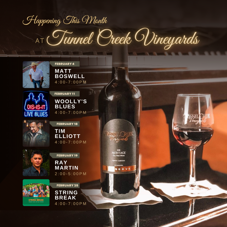 Established in 2013, Tunnel Creek Vineyards is a family-owned winery and vineyard located in Roxboro, North Carolina. Offering locally grown wines, wine tastings, stunning views, and an award-winning events venue, Tunnel Creek is a perfect little slice of paradise.
