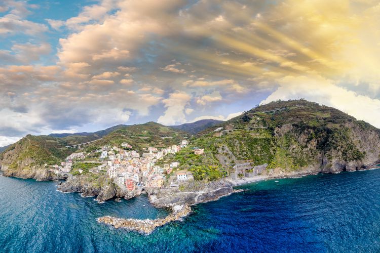 The Cinque Terre, in Italy’s province of La Spezia, Liguria, is a group of five small, fishing villages along the coast of the Ligurian Sea: Riomaggiore, Manarola, Corniglia, Vernazza and Monterosso al Mare.