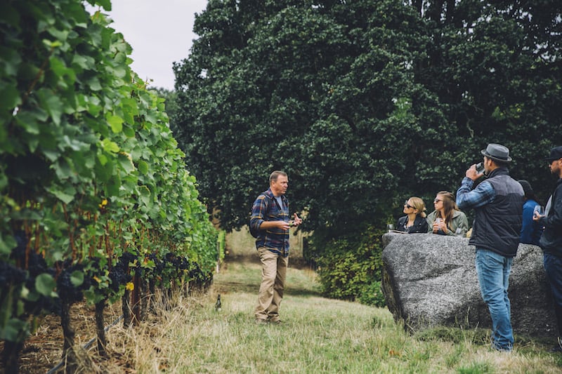 At 10 am daily (weather and vineyard operations permitting), we offer a guided trek through our Calkins Lane Vineyard led by a member of Adelsheim’s Education Team followed by a seated wine tasting on our terrace.