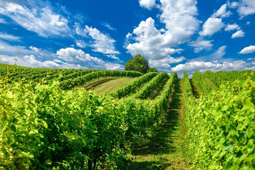In England, the cool climate is a prime location for cultivating grapes for Sparkling Wine. Most wines are made with Champagne grapes—Pinot Noir and Chardonnay—but they also use hybrid grapes that are cold-hardy. England is swiftly becoming an important spot for sparkling wines! Chapel Down is a brand that is easy to find in the states. The Brut NV is a great example of a classic English Fizz.