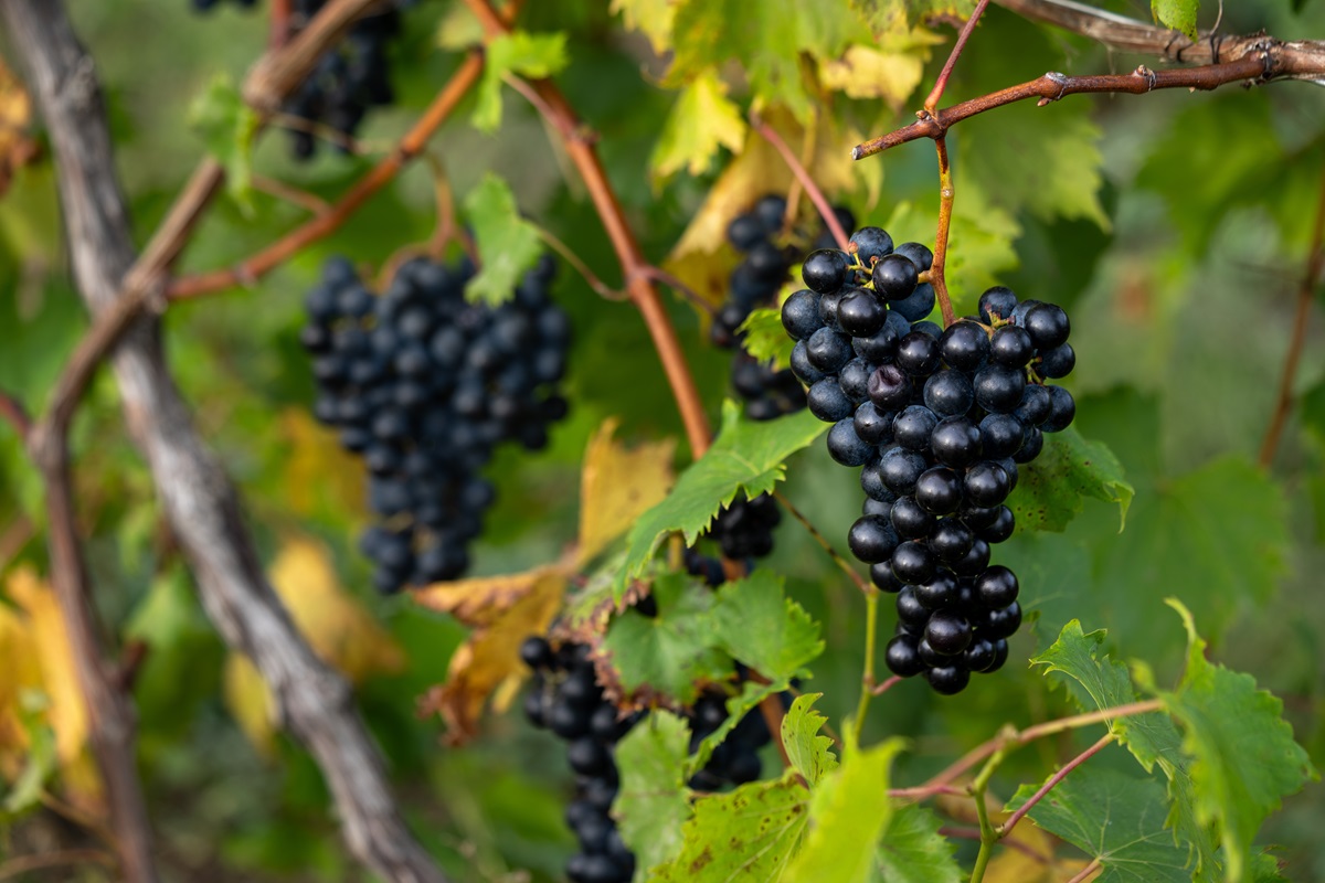 Above: Chambourcin grapes nearing maturity hang on the vine in Lake Erie Wine Country. Photo by Chris Maas.