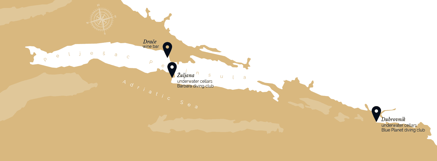 Visit the Edivo Underwater Winery in Croatia (there are 3 locations). For adventurous wine and sea lovers we offer a unique experience of visiting one of our underwater cellars in Žuljana and Dubrovnik. A limited number of Navis Mysterium bottles and amphorae are kept in a sunken boat close to Žuljana. We organize at request supervised dives where you can enjoy in spectacular undersea scenery and see first-hand our wine cellar.