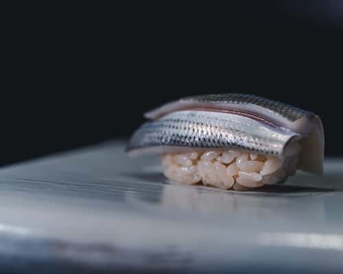 Kohada (Gizzard Shad) Sushi with Orange Wine